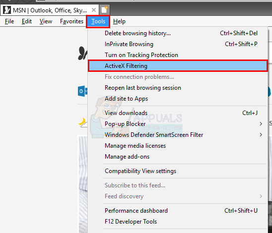 That’s it. This should put a check mark in front of ActiveX Filtering option. You can see the check mark by repeating the steps given above.