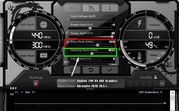 - Repeat Steps 5-7 for the Memory Clock.