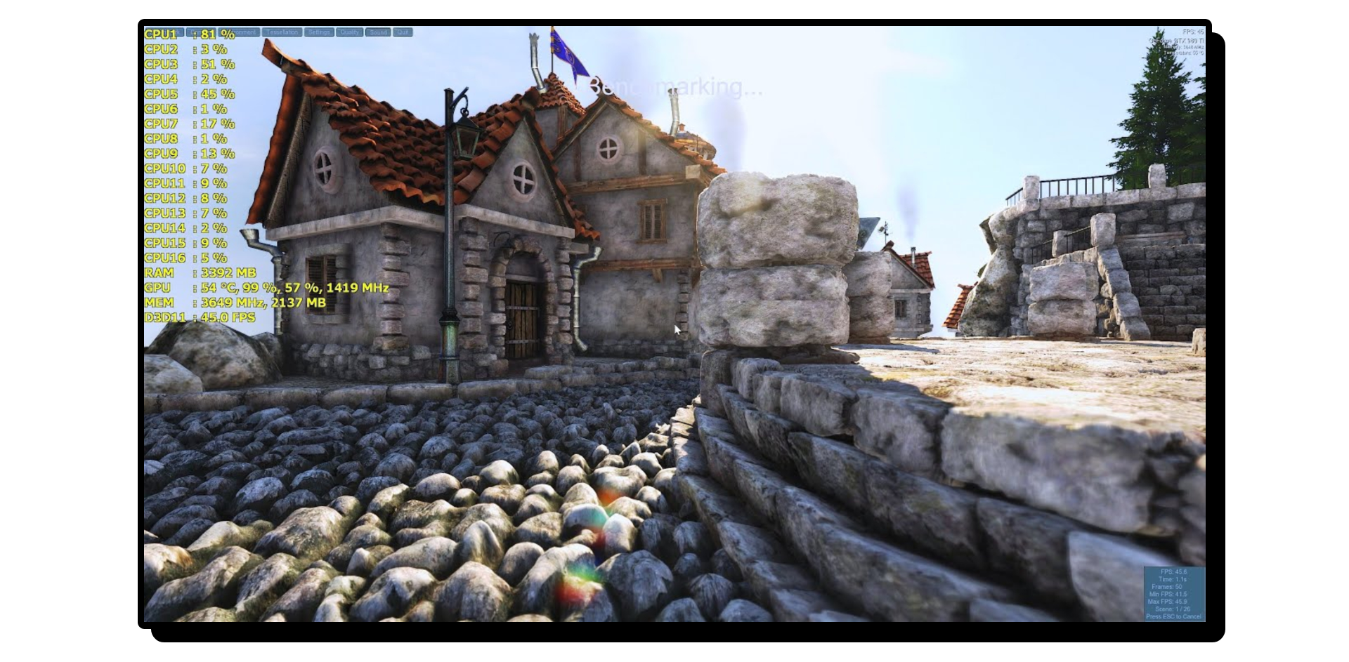 - Switch to Unigine Heaven and monitor for frame drops, stutters, or visual artifacts (glitches).