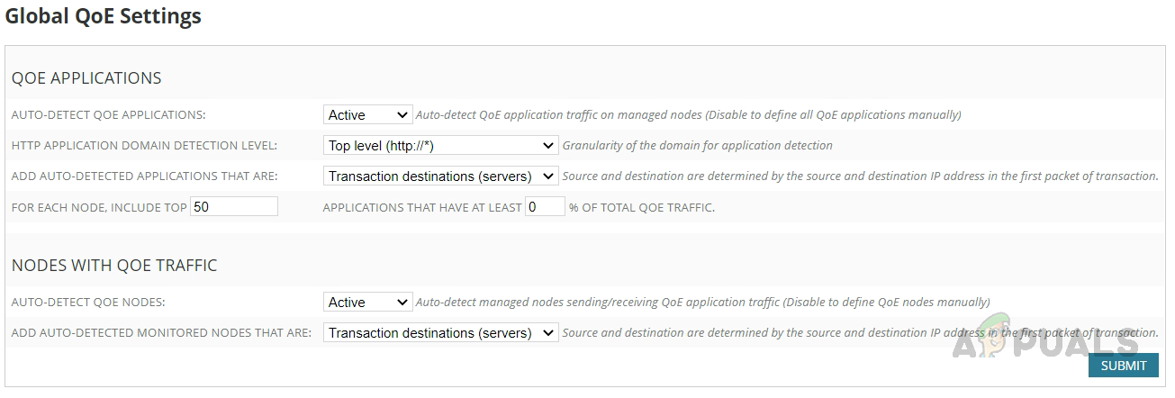 Once the packet analysis sensor is deployed on the server and the mirrored port is connected with the sensor server, nodes and applications are automatically monitored by Solarwinds QoE. We can control the sensor server’s behavior by customizing the global QoE settings.