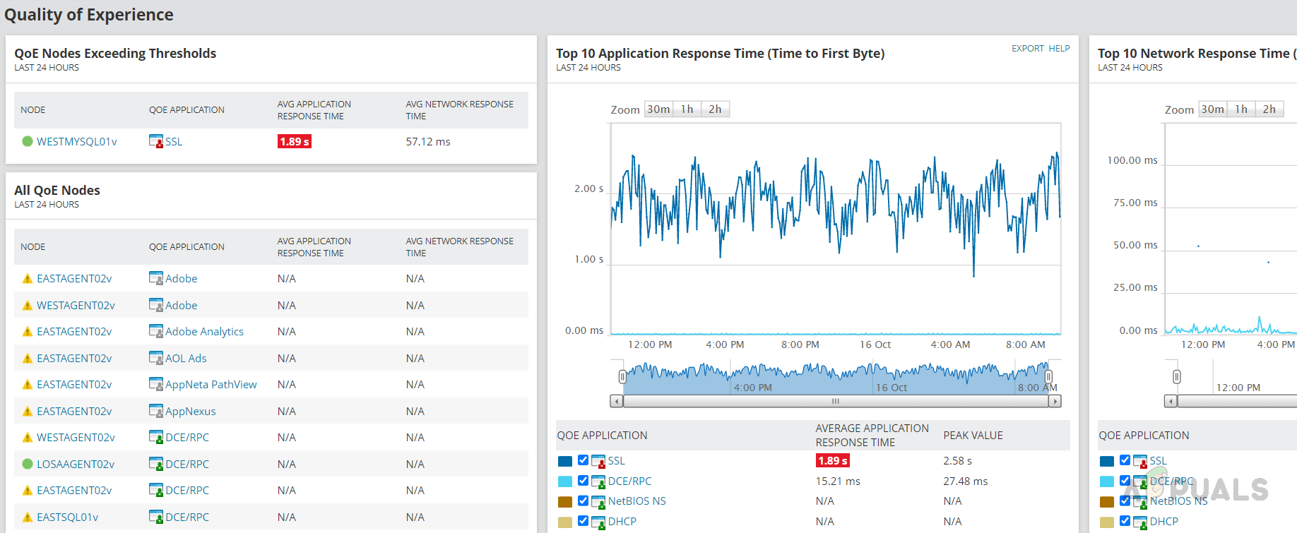 Solarwinds offers a QoE feature to monitor the traffic and do deep packet analysis to monitor the overall quality of user experience. With this deep packet analysis, Network and System Administrators can determine whether it’s a network or application issue. These analyzed metrics can alert proactively before any potential problem occurs or the end users report any issues.