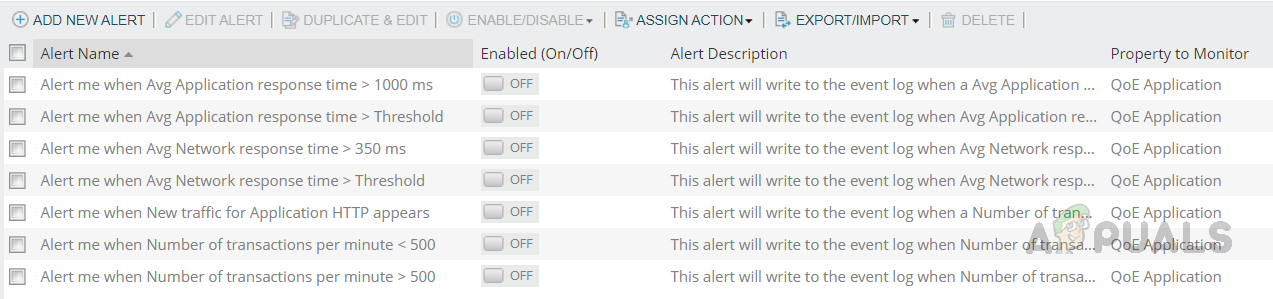 Solarwinds also provides alerts for QoE. We can use the default alerts or use the default alert as a template to create a customized alert suitable for the environment.