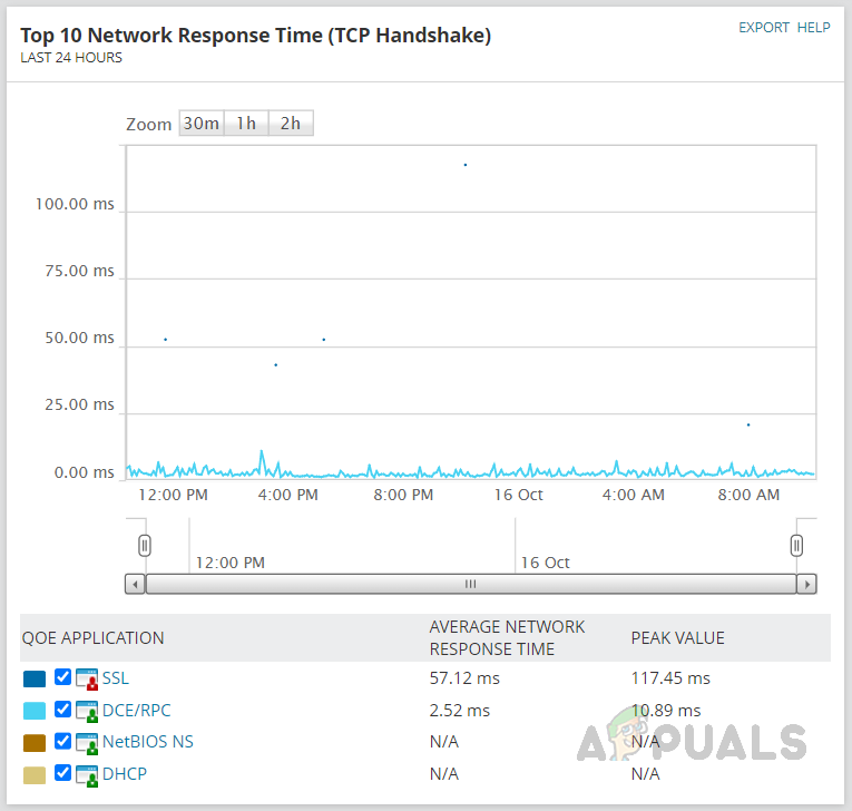 - In the Top 10 Network Response Time widget, we can see how much time the application takes to respond to a TCP handshake.