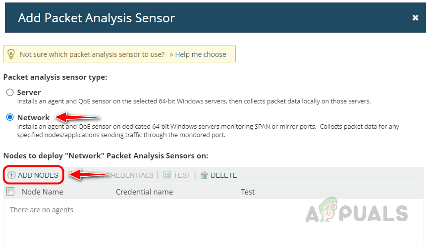 - Select the sensor type you want to deploy. Let’s select Network and click on Add Nodes for this demo.