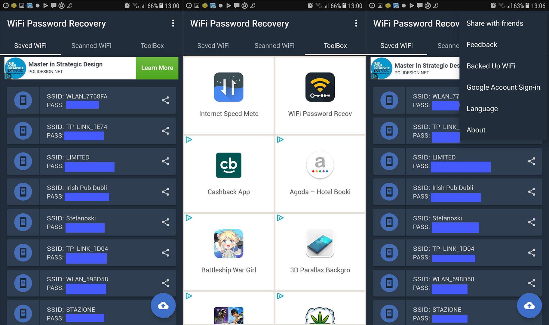 The difference from the previous app is that WiFi Password Recovery has an option to backup your WiFi passwords to your Google account, and restore them later from any other Android device. I recommend this app for users that have multiple Android devices. Here is the download link in the Google Play Store, check it out WiFi Password Recovery.