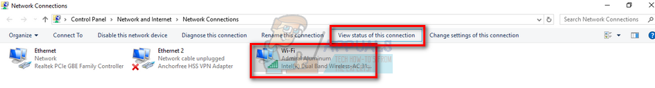 - Now click on the Wi-Fi network once and click the option “View status of this connection” present at the top.