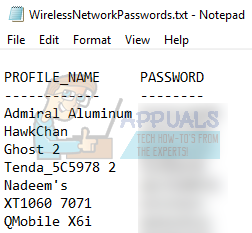- Navigate to your desktop and locate the file “WirelessNetworkPasswords.txt”. Open it. Here you will see two columns: one for the wireless network ID and the other for its password.