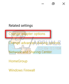 - Once in the network connections window, click the option of “Change adapter options” present at the top right side of the screen.