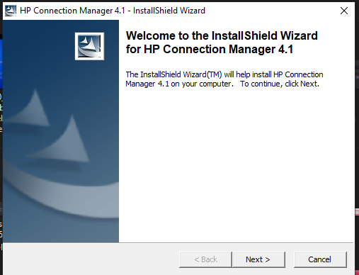 - Click here to download the latest version of HP Connection Manager, and open the file to start the installation.