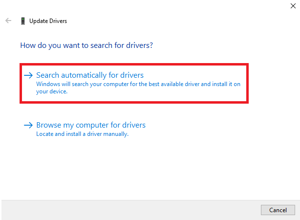 - Select Search Automatically for Drivers in the upcoming window to let the system locate and install the latest driver.