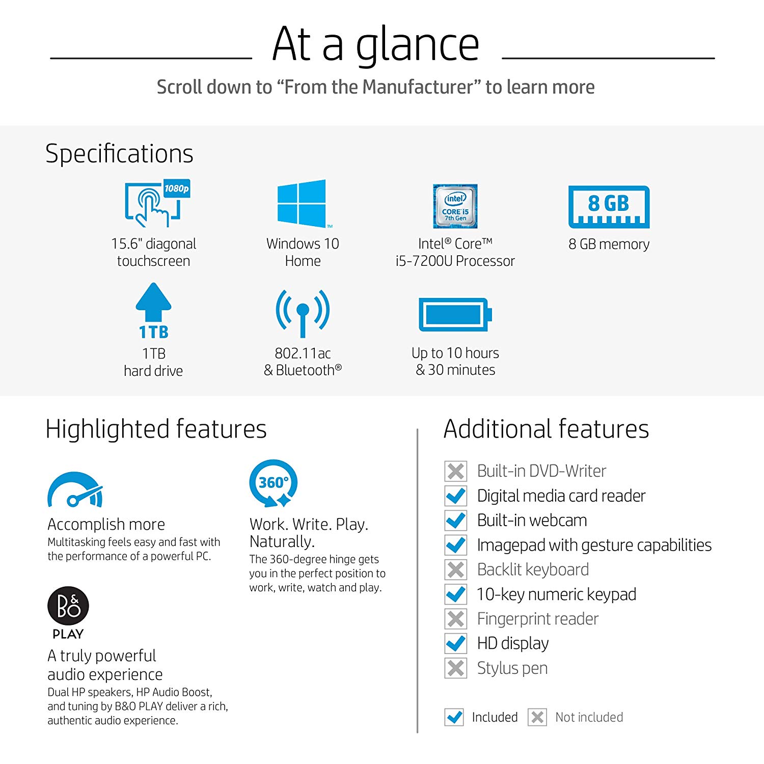 The HP Pavilion X360 is certainly not the most demanding and powerful of laptops when it comes to it. It offers some very mediocre leveled specs suited for mediumweight tasks for everyday home or office use. But, as far as other helpful features go, the X360 sure is packed with them. With great and powerful speakers and a very generous battery life, it manages to do its basic job well. Plus, you get a lot of ports for connectivity so that is always something to appreciate.