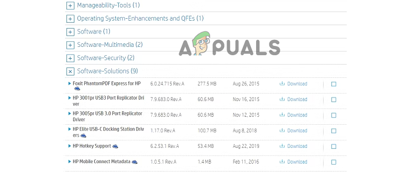 - Next, click the option Software-Solutions. Then, select the HP Hotkey Support driver and click on the Download option.