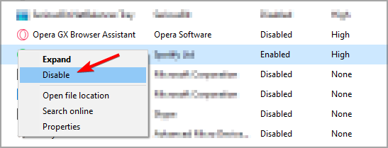 - Find HpseuHostLauncher or any HP software, right-click on it, and select Disable.