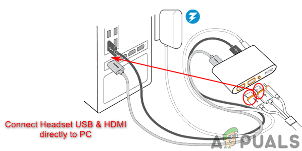 - Now plug the USB and HDMI cable of the HTC Vive headset directly into your PC.