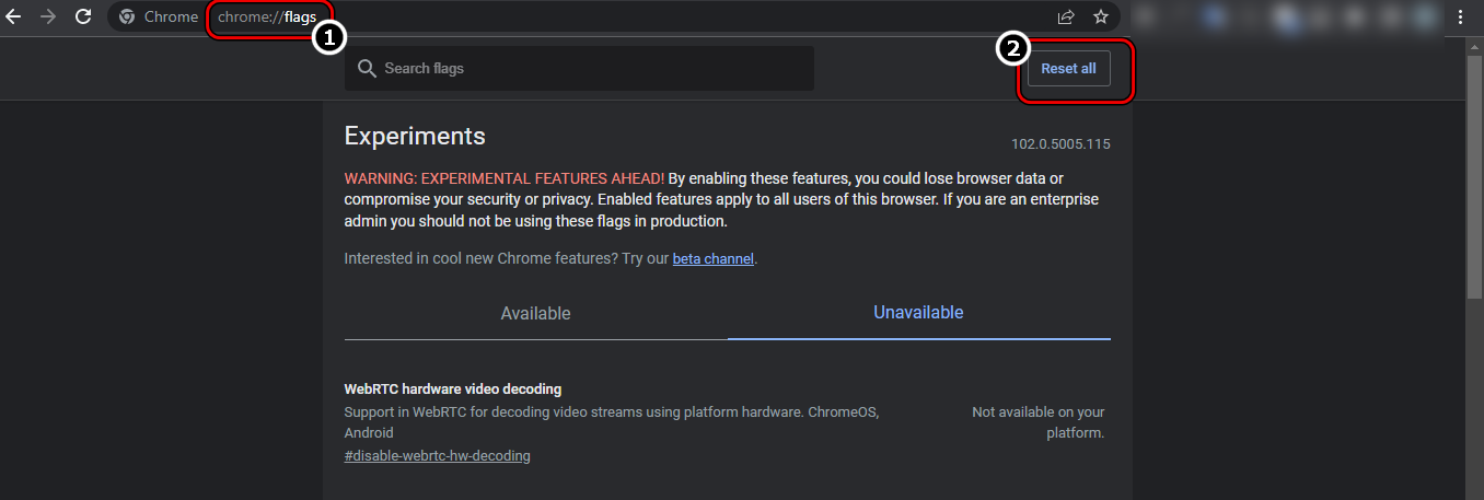 7. Reset the Browser’s Advanced Experimental Settings to Defaults
