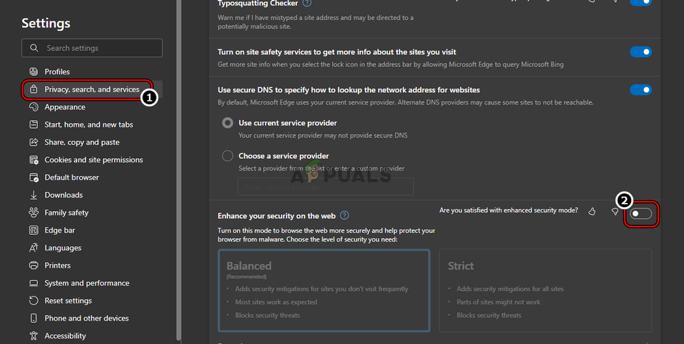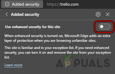 You may encounter the HTTP2 protocol error if the browser’s advanced security is enabled as it can sometimes break the browser’s ability to send parse-able data packets to the server and thus cause the issue. In this scenario, disabling the browser’s enhanced security for the problematic website may solve the problem. For illustration, we will discuss the process of disabling Enhanced Security on the Edge browser.