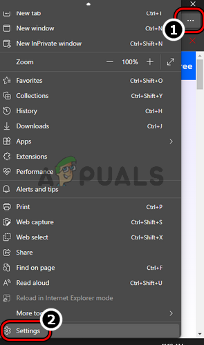 - If the issue is not limited to a single website but is occurring on many websites, launch the Edge browser and near the top right, click on the three horizontal ellipses to open the Edge menu.