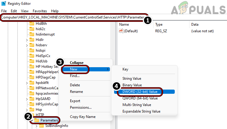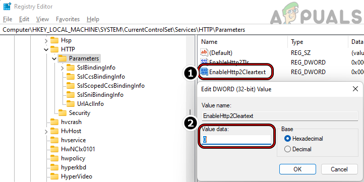 Create a New EnableHttp2Cleartext Value Under the Parameters Registry Key and Set its Value to Zero - Now close the registry editor and restart your Windows system.