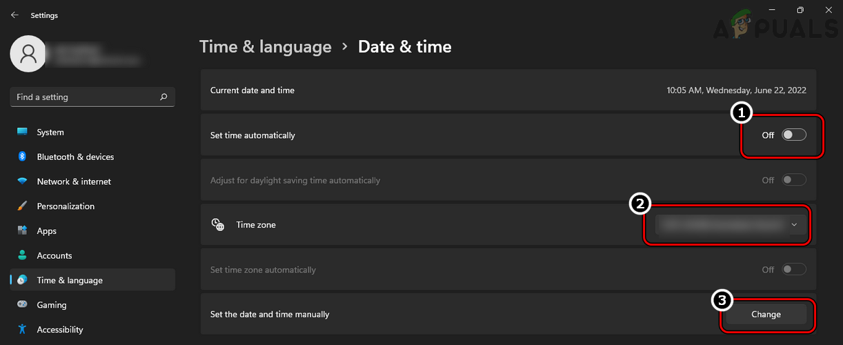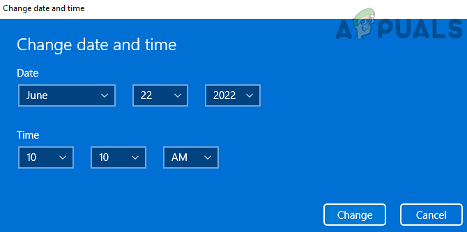 Disable Set Time Automatically, Set the Correct Date & Time, and Click on Change for the Set the Date and Time Manually - Then, click on the Change button located in front of Set the Date and Time Manually.