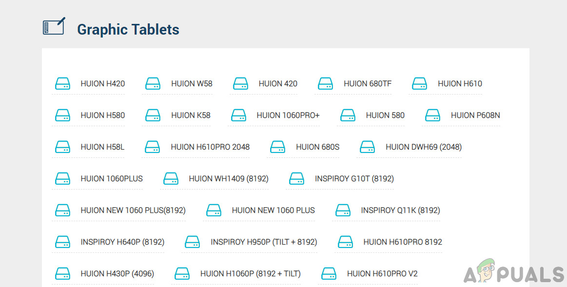 There are numerous cases why drivers might not work in your case. If the drivers are somehow corrupt or outdated, they may not be in-sync with the current Windows update. On the other hand, newer drivers are known to cause problems as well. In this solution, we will navigate to Huion’s official website and download the drivers from there. If these drivers work, well and good. If the latest drivers don’t work, we will download an older driver and see if that does the trick.