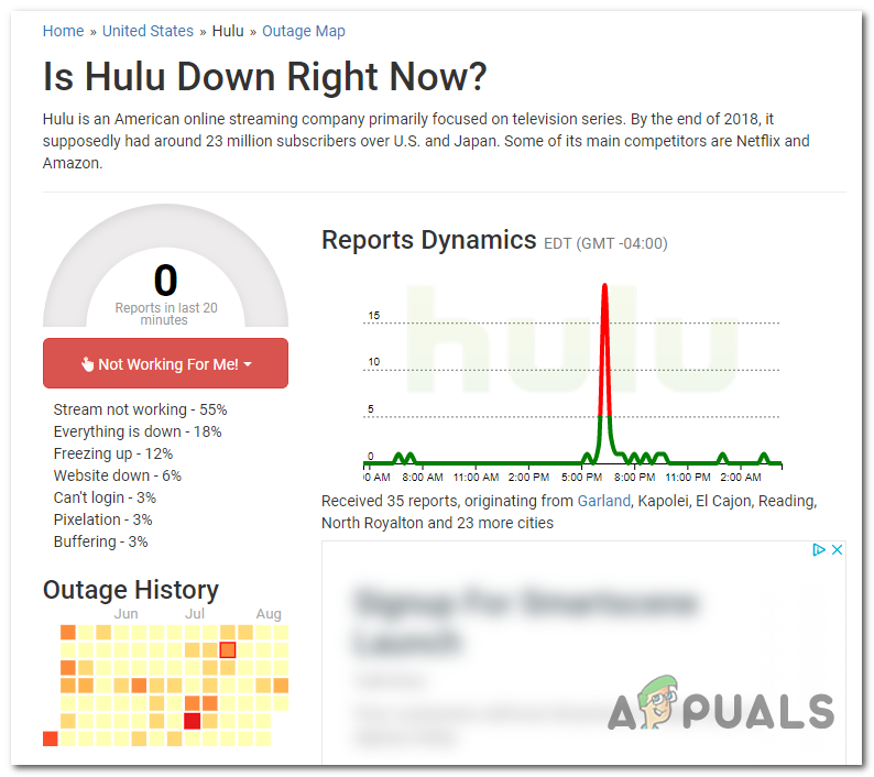 - Hulu Server issue – First things first, you should investigate and see whether this issue is not somehow caused by a server issue that is beyond your control. If that’s the case, there is no fix for the problem other than waiting for the developers to fix the issue on their side.