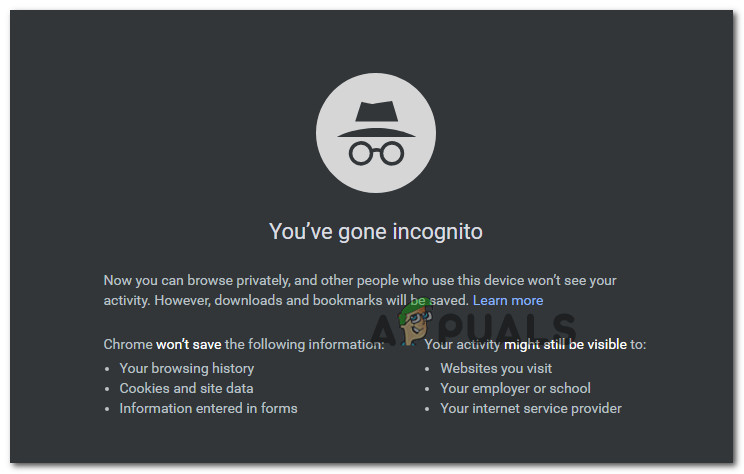 As a lot of affected have reported, the go-to fix for the majority of users that encountered this error code on a PC is to use the Incognito Mode / Private Mode. This will serve as a proper workaround if the problem is being caused by an extension or add-in installed on your browser.