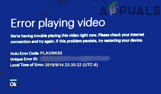 Hulu may show the Error Code PLAUNK65 due to a communication glitch between the device and Hulu servers (or outage of Hulu servers). Moreover, the outdated Hulu app may also cause the issue at hand.