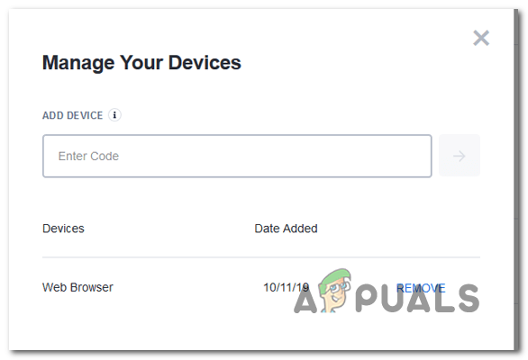 - Once you’re finally inside the Manage Your Devices menu, go ahead and click the Remove button associated with every non-essential device or with any device that you don’t recognise.