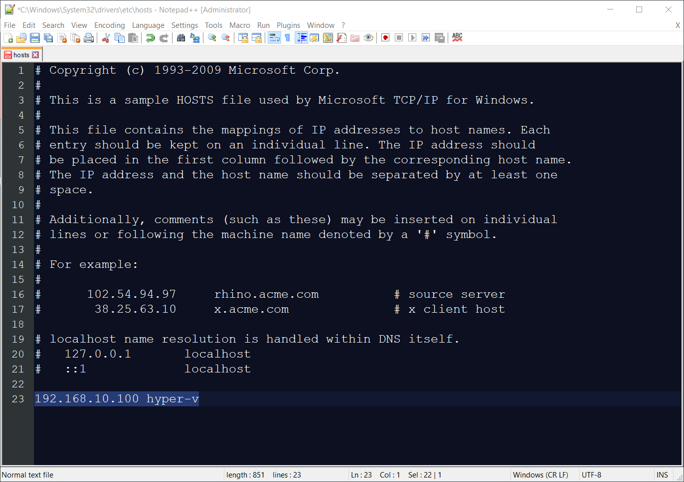 - Save the file. In case you are using Notepad++ it will ask you to save the file in Administrator mode. Please confirm it by clicking OK.