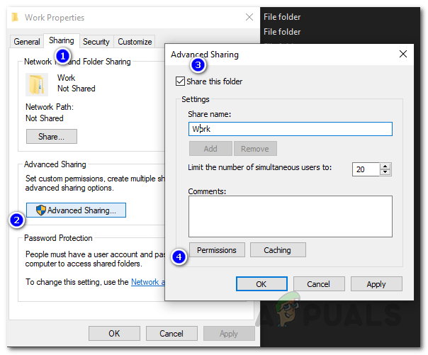 - Once you are in the Advanced Sharing window, check the Share this folder box. Now, you should be able to click on the Permissions button down below.