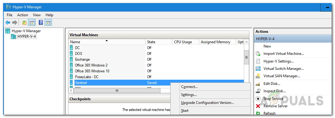 - After that, open up the Hyper-V Manager and delete the virtual machine. To do this, right-click on the said virtual machine and click the Delete option.