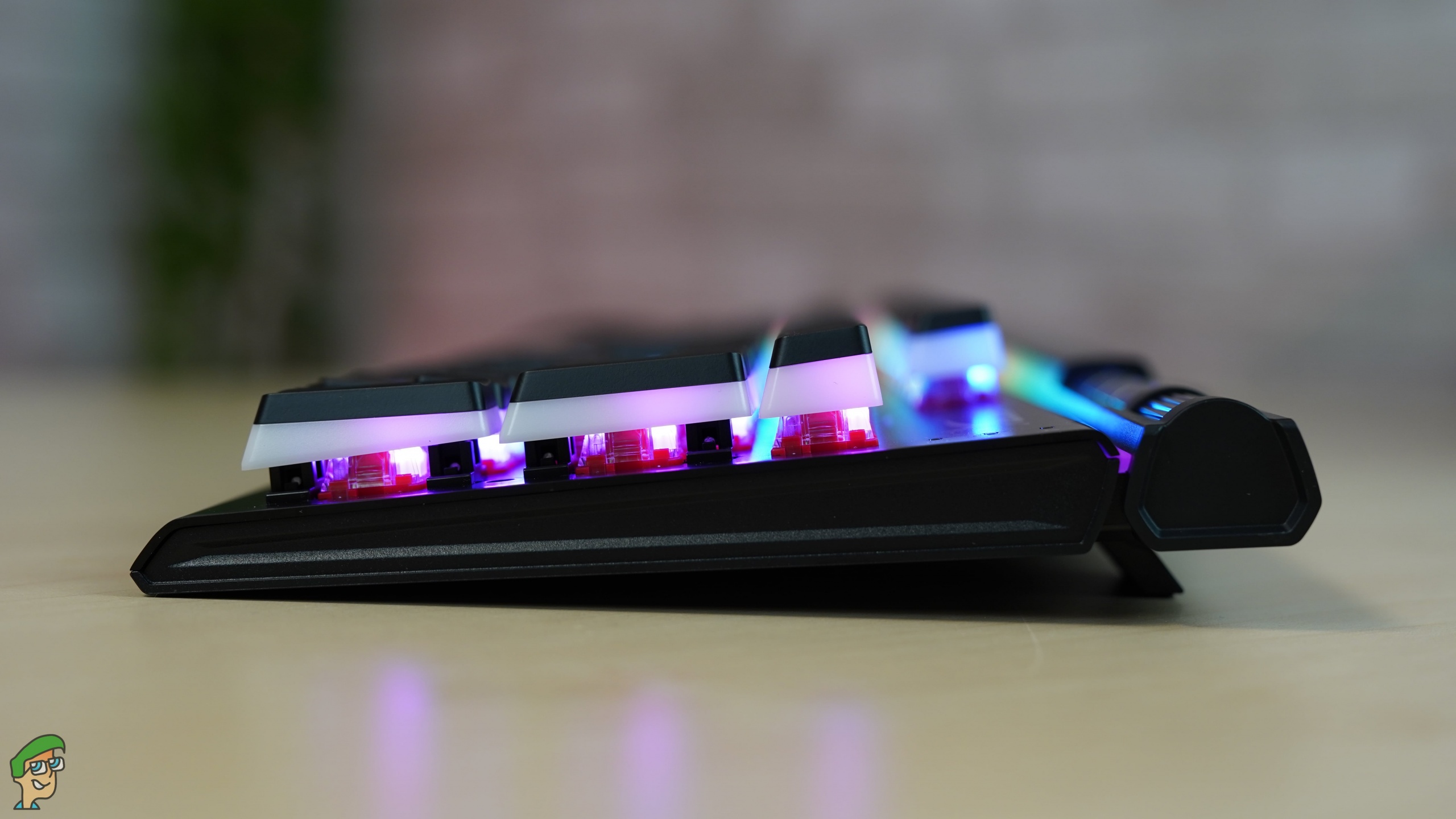 What we liked about the design of the keyboard was the exceptional build materials used and the excellent top quality RGB lighting power the keyboard possesses. For sheer RGB and its quality, this may be one of the top choices in the market. We also liked the fact that this keyboard is relatively thin and is not bulky in any way. What we did not like about the design of this product is that it has no armrest, its steel frame material makes it very prone to marks and dashes left by fingers and those extra keycaps would have been nice.