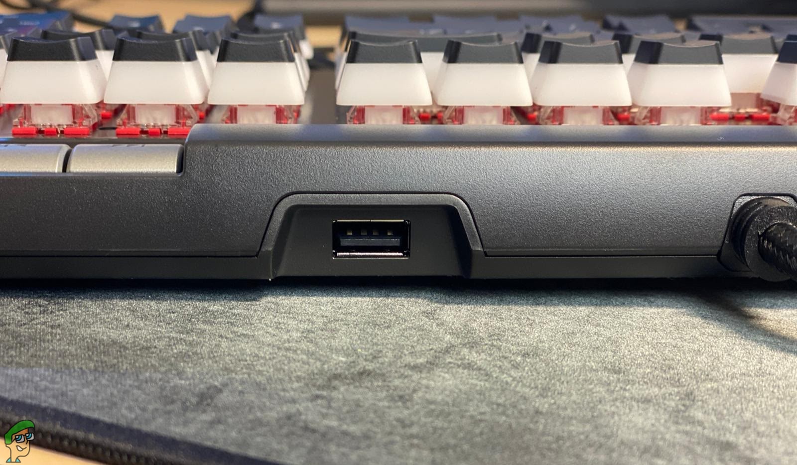 The product uses ABC pudding keycaps or keys instead of the normal keycaps. The keycaps are different in the fact that they are what is called Doubleshot keycaps; meaning a set of two different colors makes up the keycap. The keys are black colored on the top and are of a sort of transparent material on the bottom. This combination allows for much better RGB lighting and the ABS Doubleshot keys allow for fantastic durability. The keyboard has a USB 2.0 slot on the far side besides its connectivity wire. The USB 2.0 slot can be used to connect peripherals or even use it for mobile charging, it is known as a USB pass-through feature. The product has two input USB wires which have to be connected to the PC, one for the keyboards data and the other for the USB 2.0 slot.