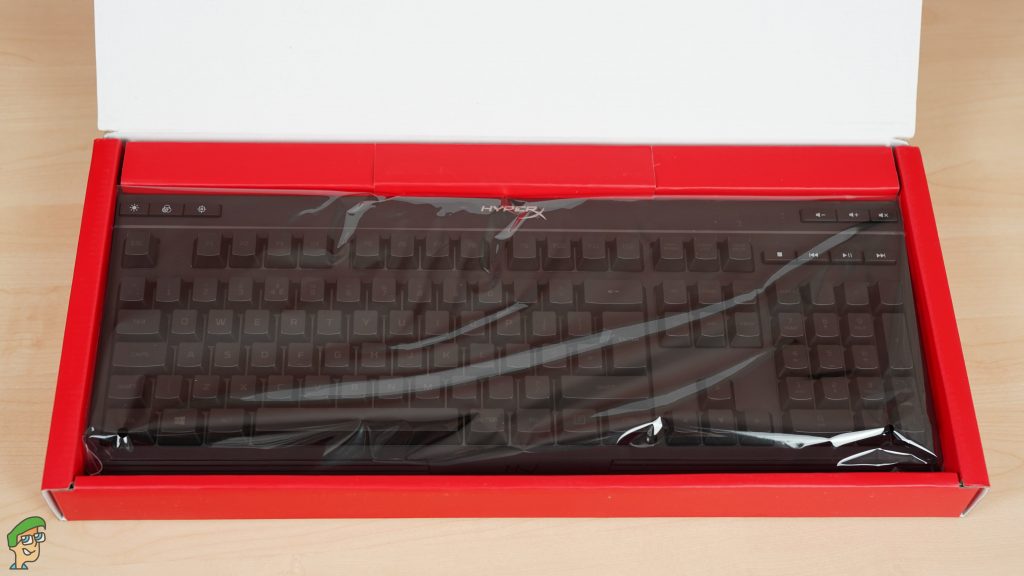 The keyboard arrives in the usual packaging we’ve grown to admire from HyperX. They use the same red and white cardboard box seen on many of their other products. It’s not much, but it’s definitely refreshing from the usual boring brown box ordeal.