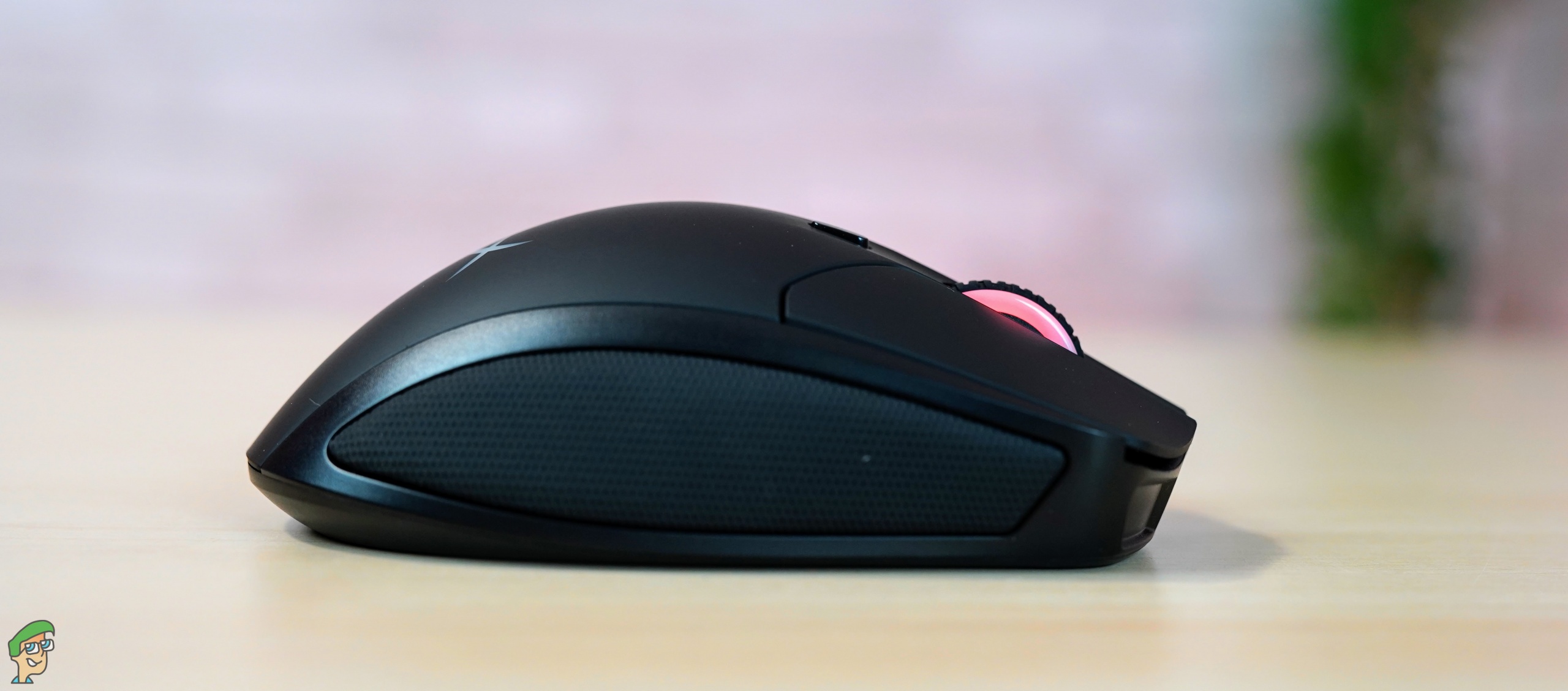 There are no over the top design changes in the Pulsefire Dart. It has the same simplistic shape but still is easily recognizable thanks to the big HyperX logo on its body. The Pulsefire Dart has a nice and smooth curve that dips down a little steeply as you reach the back. For your thumb, the body protrudes out just a little bit, just enough for you to easily rest your thumb and not worry too much about it staying in an uncomfortable position for too long. The textured sides help not only in improving the grip that you have on the Pulsefire Dart but also prevent sweat from accumulating and while improving the grip of the mouse at the same time.