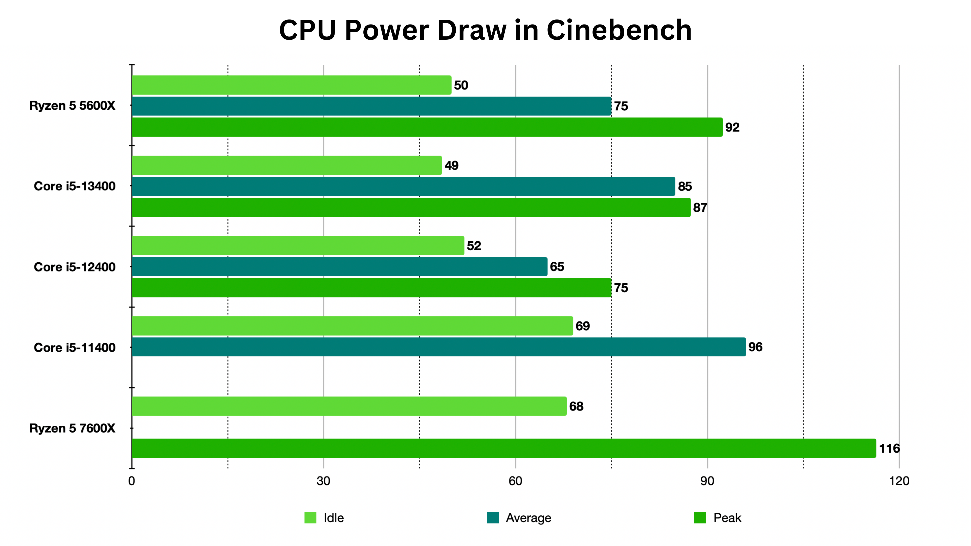 We did all our testing on the 65W spec without changing anything in the BIOS. Generally, the i5-13400 will run at PL1 which keeps it limited to that 65W limit. However, during the Cinebench R23 run stress-test, we saw our i5-13400 hit a peak wattage of 87.4W, and it ran at around ~85W throughout the whole test. This means the CPU ran in PL2 the entire time as that can allow it to go up to 117W for momentary bursts.
