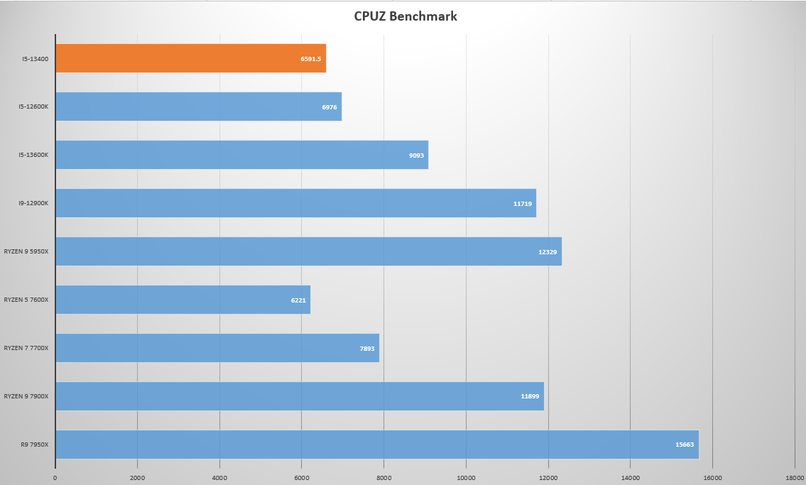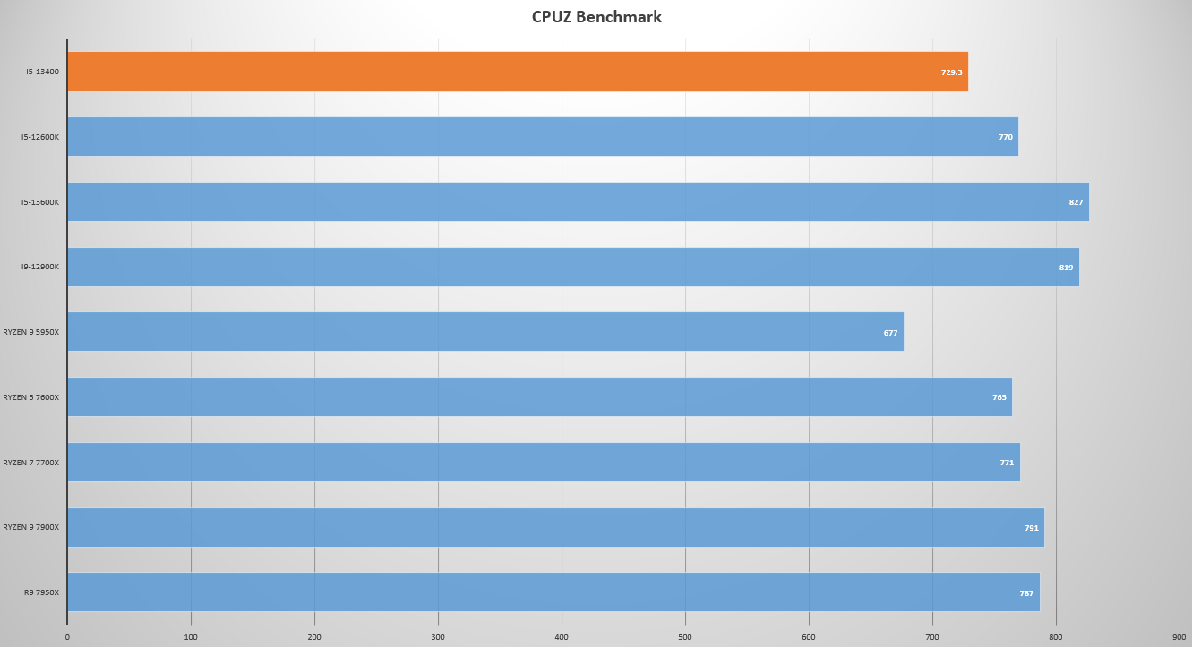 As for the performance, the i5-13400 manages to score 729.3 points and 6591.5 points in the single and multi core test respectively. That’s a very respectable score for a CPU in its early state. For some reference, see the following charts;