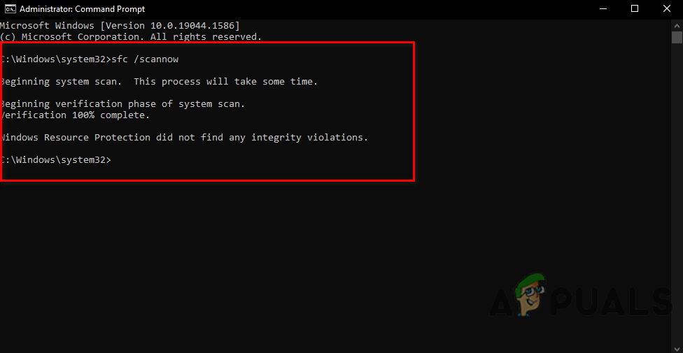 Run sfc/scannow in cmd - Wait for the scanning process to finish.