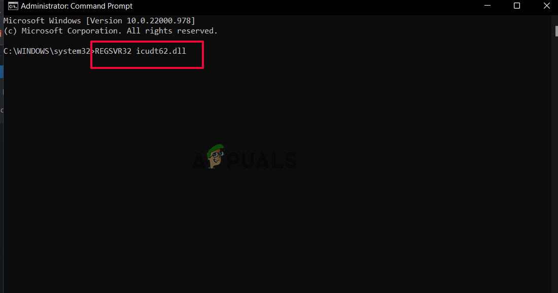 Type command REGSVR32 icudt62.dll in CMD - Once you are done with the steps, simply restart your system.