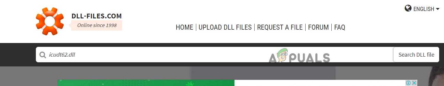 - As the website opens, in the search box, type icudt62.dll file.
