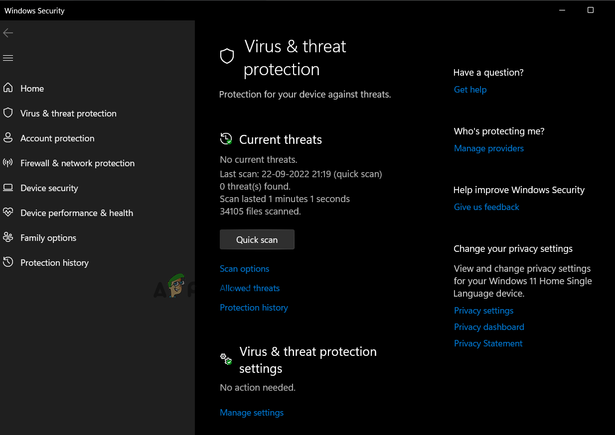 Click Windows Security - Click on the Virus & Threat Protection option, and click on the Quick Scan.