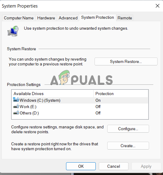 - And then click on Create a restore point.