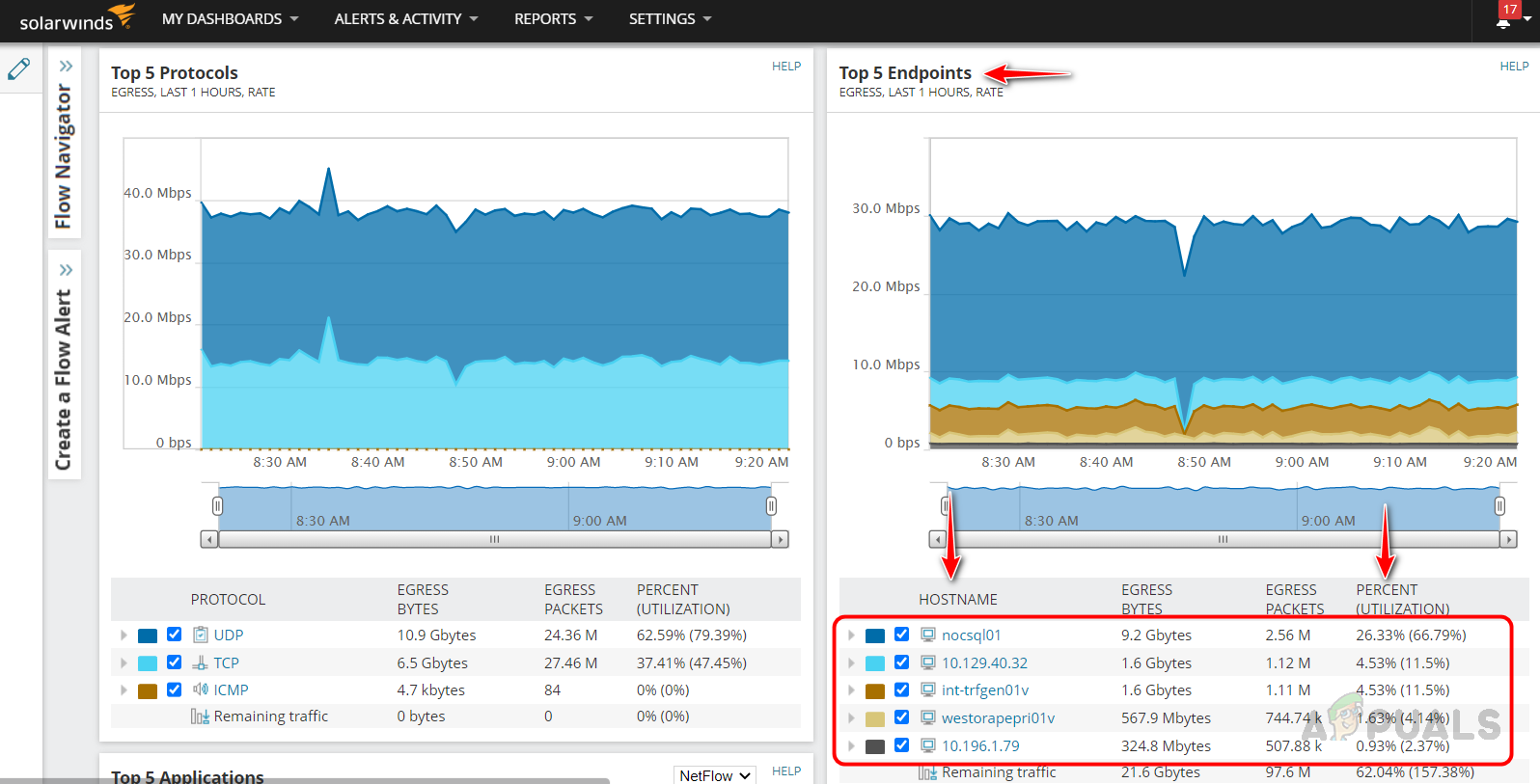 - On the next page, check the high bandwidth consumers under Top 5 Endpoints.