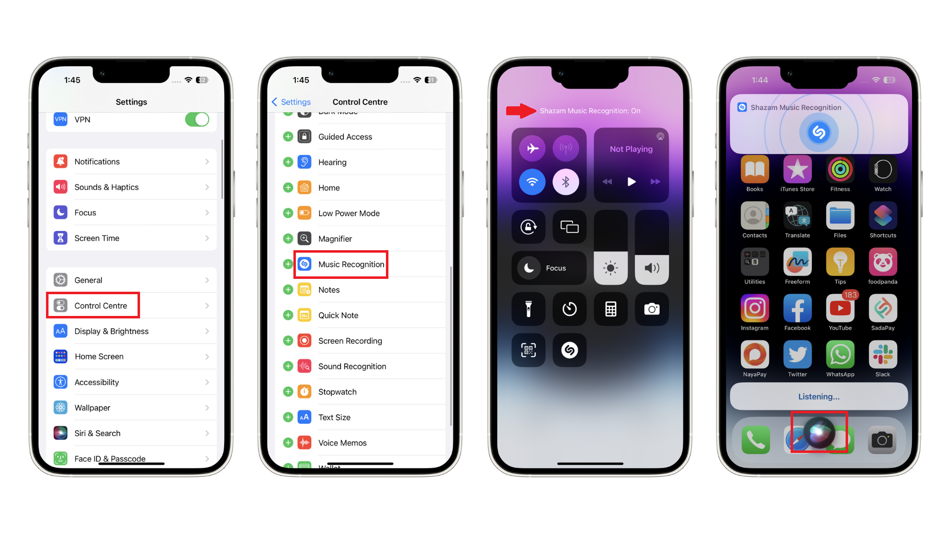 - To add a Shazam shortcut to your iPhone, navigate to Settings > Control Center and select the Add option next to Music Recognition. The Control Panel will be updated to include a Shazam button.