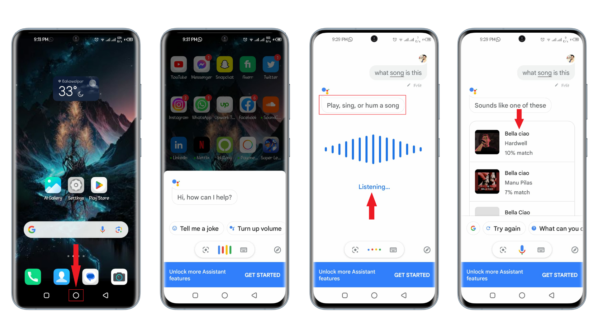 - Once you play the music or produce a hum for the tune, the Assistant will recognize the song.