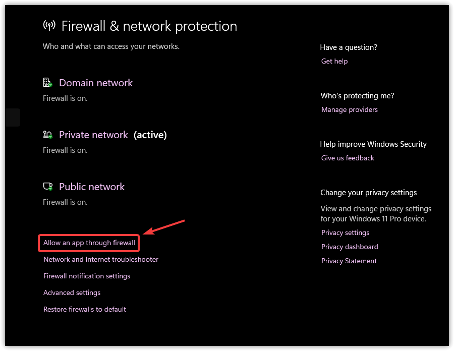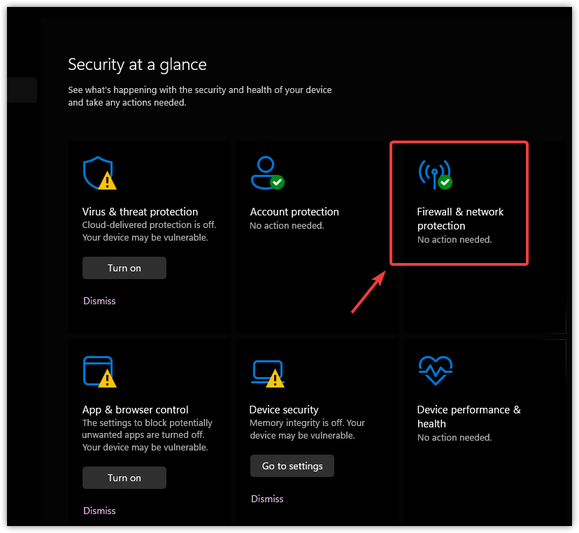 - Click Firewall & network protection.