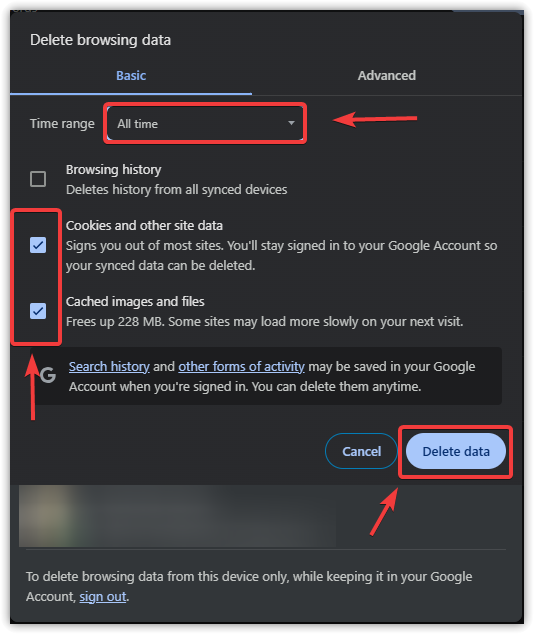 - Click Delete data.