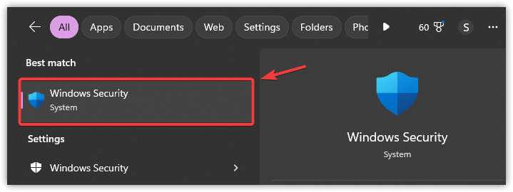 - Press Win + S, type Windows Security, and press Enter.