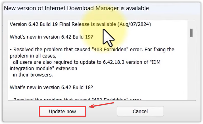 - If an update is available, IDM will prompt you to download it.