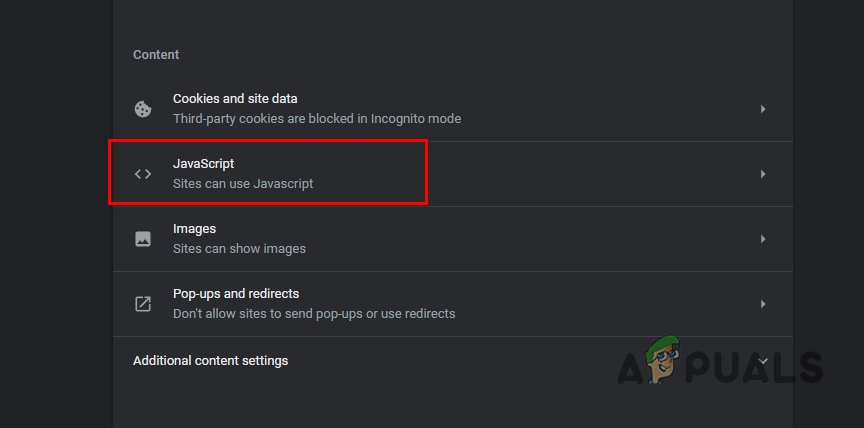 If none of the fixes mentioned above helped you, you could try turning on Javascript, which worked for many users, and check if it helps you solve the issue. To switch to Javascript in Chrome, follow the steps given: